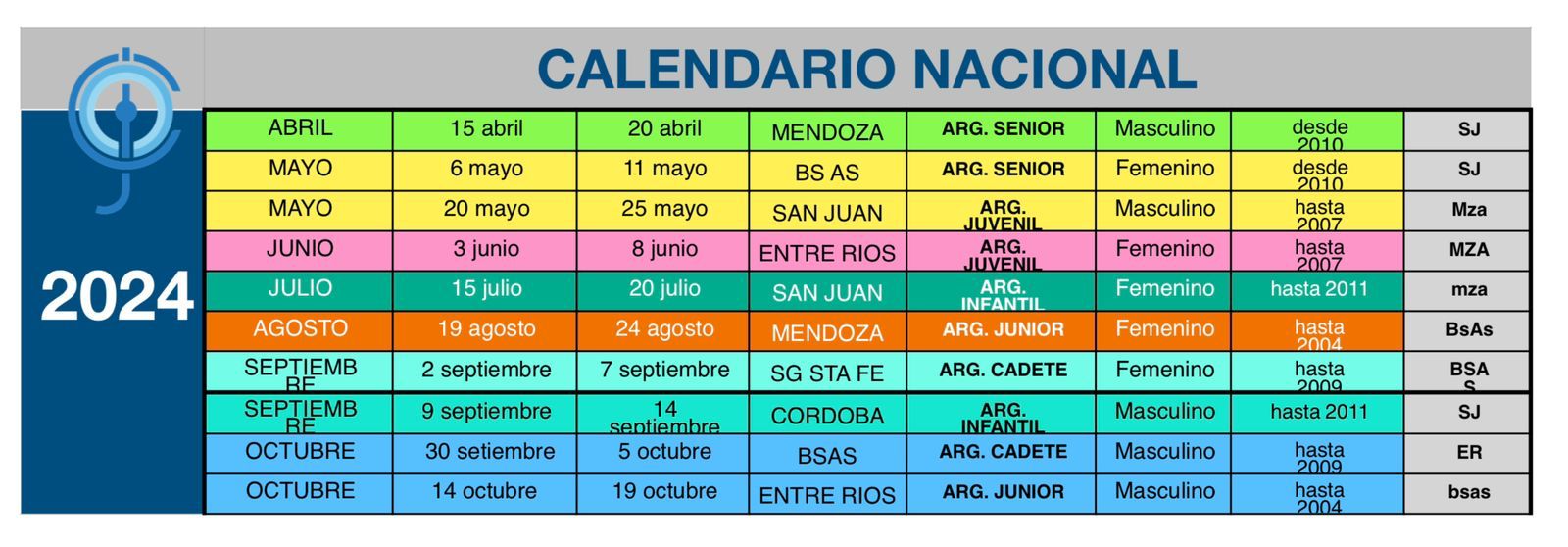 🔵 Calendario Oficial CAP 2024